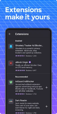 • Get helpful add-on extensions, including ad blockers, block certain web pages, turbo-charge privacy settings and more with our private browser.