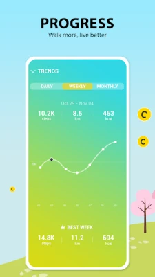 - Reach the 10K daily step goal to improve health and fitness