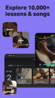 - Get over 10,000 lessons, exercises and songs by artists you love